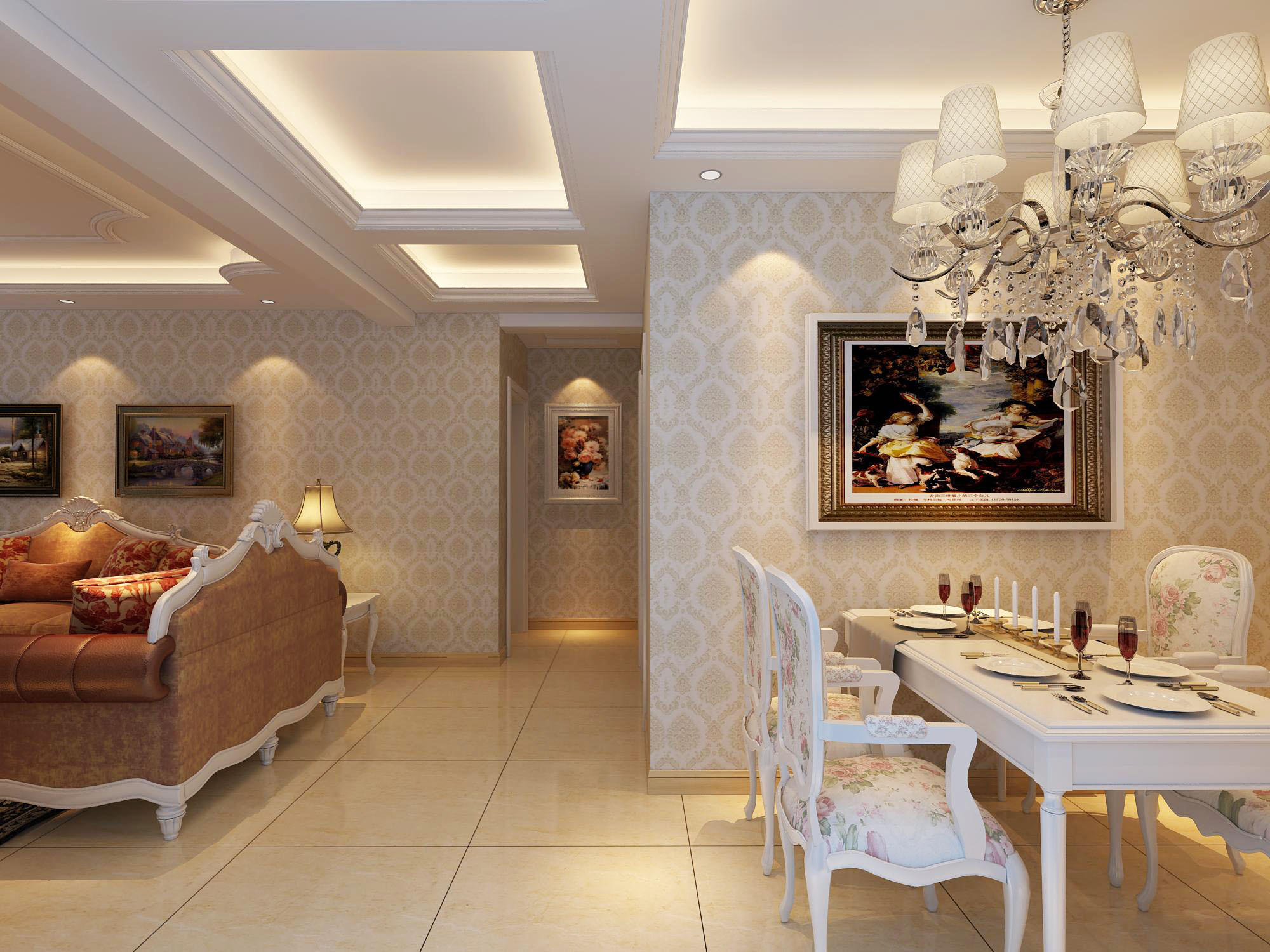 居室客廳應(yīng)是整個居室,光線最亮的一個,當(dāng)然這個亮點(diǎn)不是絕對的,而是相對的。也許在一些實(shí)際活動中,你并不需要很亮的光線,但在其他的日常居住活動中,亮光是不可缺少。從圖中可以看出,本戶型的客餐廳都是敞開式的,以吊頂作為功能區(qū)域的分割點(diǎn),不僅有分區(qū)而且顯得非常寬敞明亮