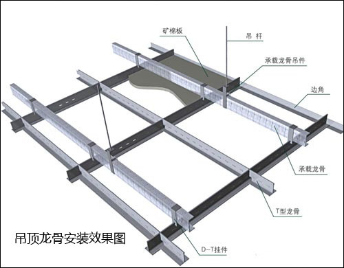 ??安裝吊頂龍骨時(shí)要注意平整,龍骨的間距偏差應(yīng)控制在允許范圍1.5米之內(nèi),龍骨安裝要按順序鑲插,龍骨、吊桿、連接件均應(yīng)位置正確,如果有懸掛的承重件就要增加橫行的次龍骨,吊桿距主龍骨端部不得超過300mm。大型燈具、排氣扇等應(yīng)單獨(dú)做龍骨固定,如果直接擱置在鋁扣板上,很容易使鋁扣板脫落,造成一定的安全隱患。